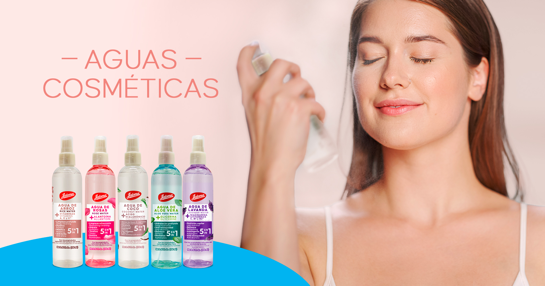 Tónico facial de Agua de Lavanda 5 en 1. Adicionada con Niacinamida y vitaminas C, B1 y B2.Con los beneficios naturales del extracto de lavanda.